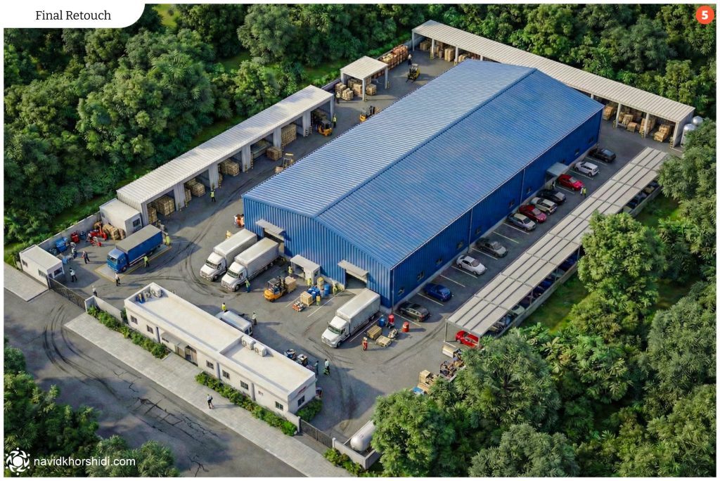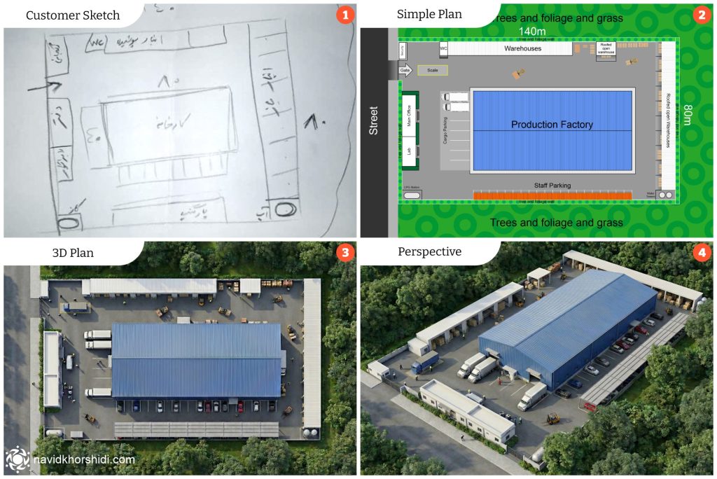 This project demonstrates how a simple sketch can evolve into a realistic 3D factory visualization—long before the first brick is laid.